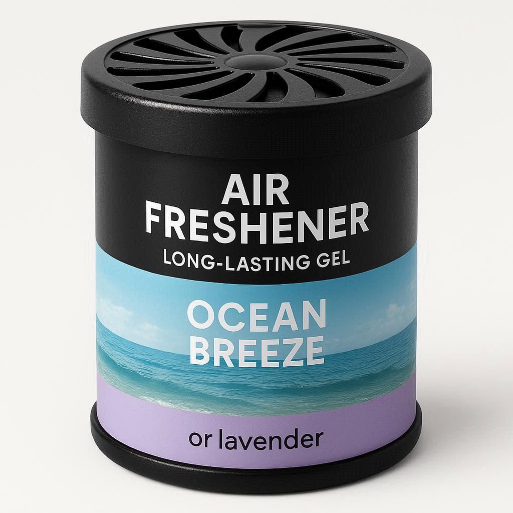 A long-lasting gel-based air freshener that subtly scents your car, available in multiple fragrance options like ocean breeze or lavender.